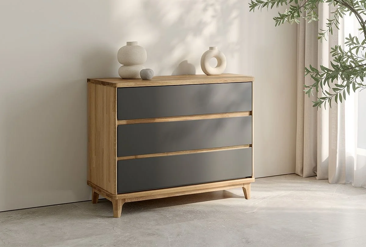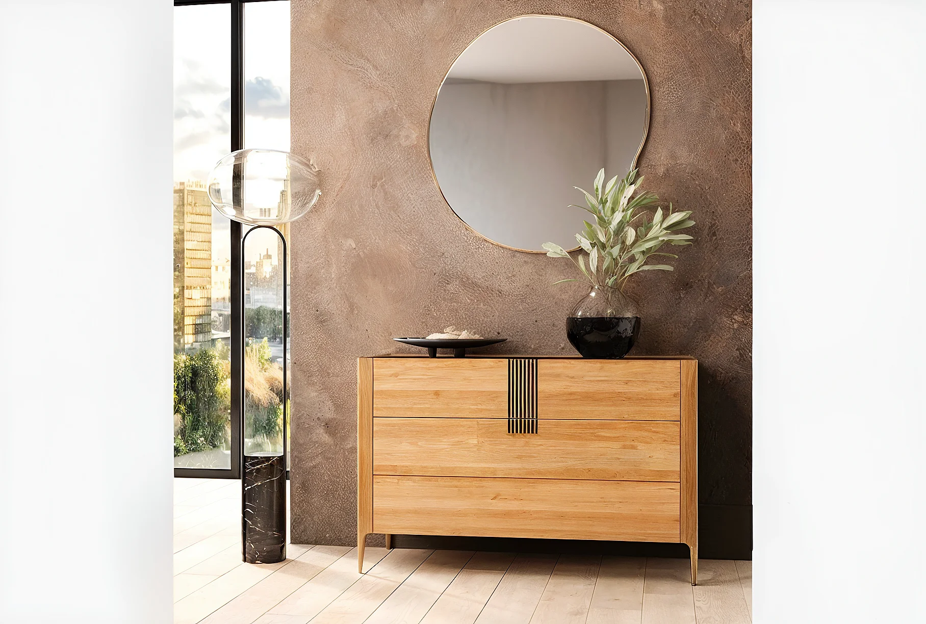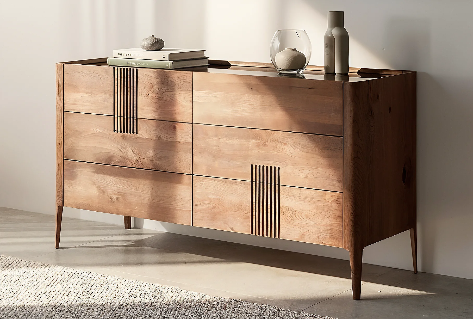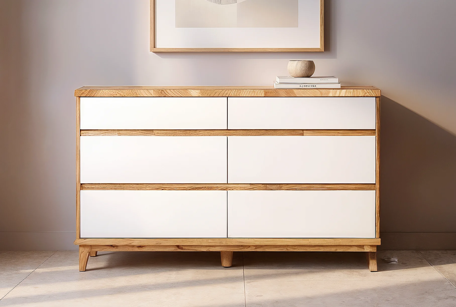 Mueble Cajonero En Madera 100% Maciza Tono Natura Y Mdf Ref: Capuchino3