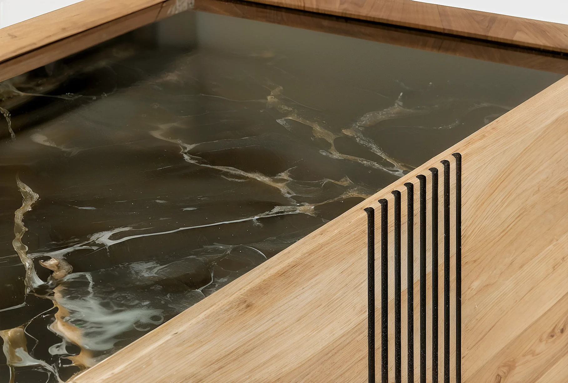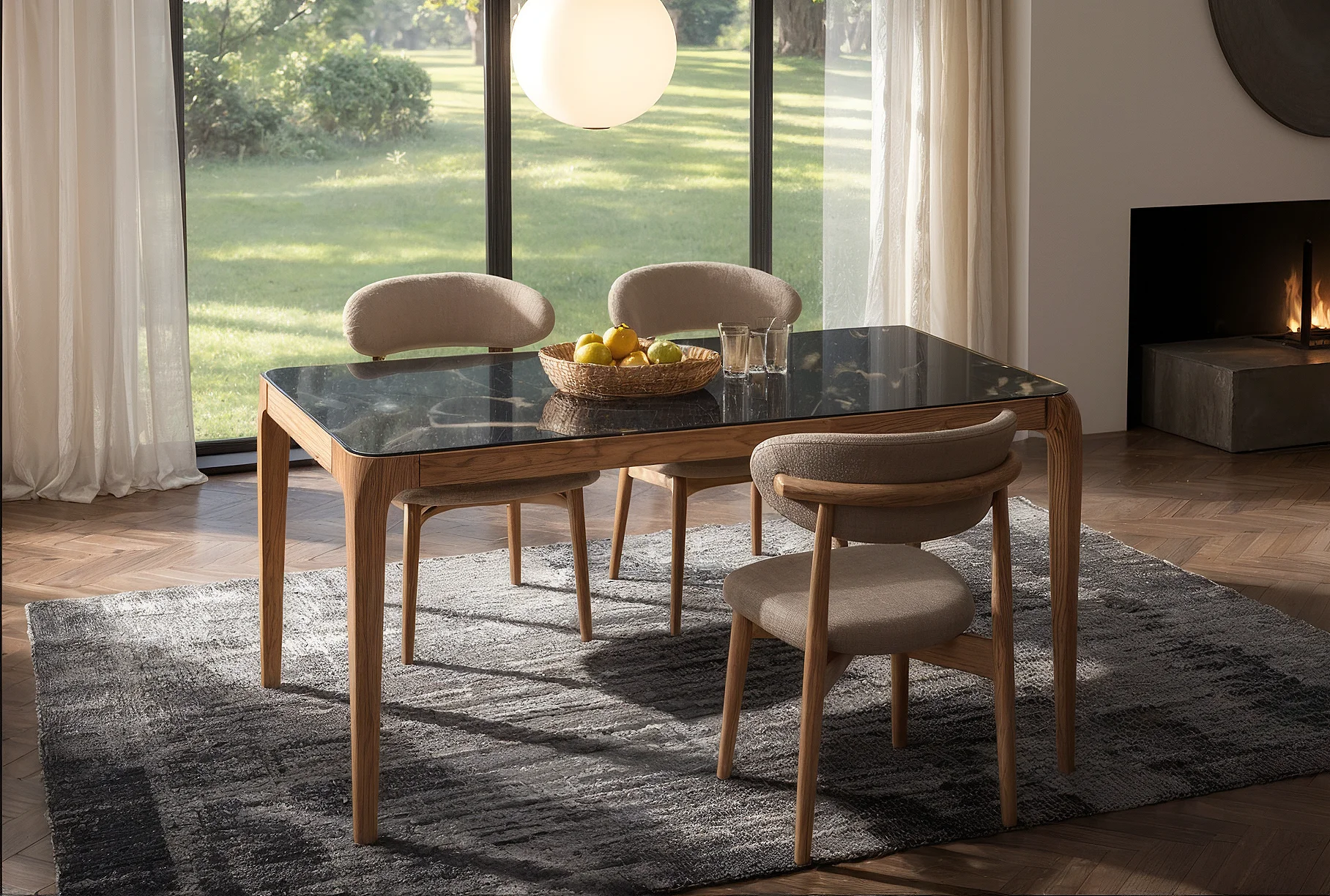Mesa De Comedor con Tapa Marmolizada En Madera Maciza De Roble Ref: Espresso5